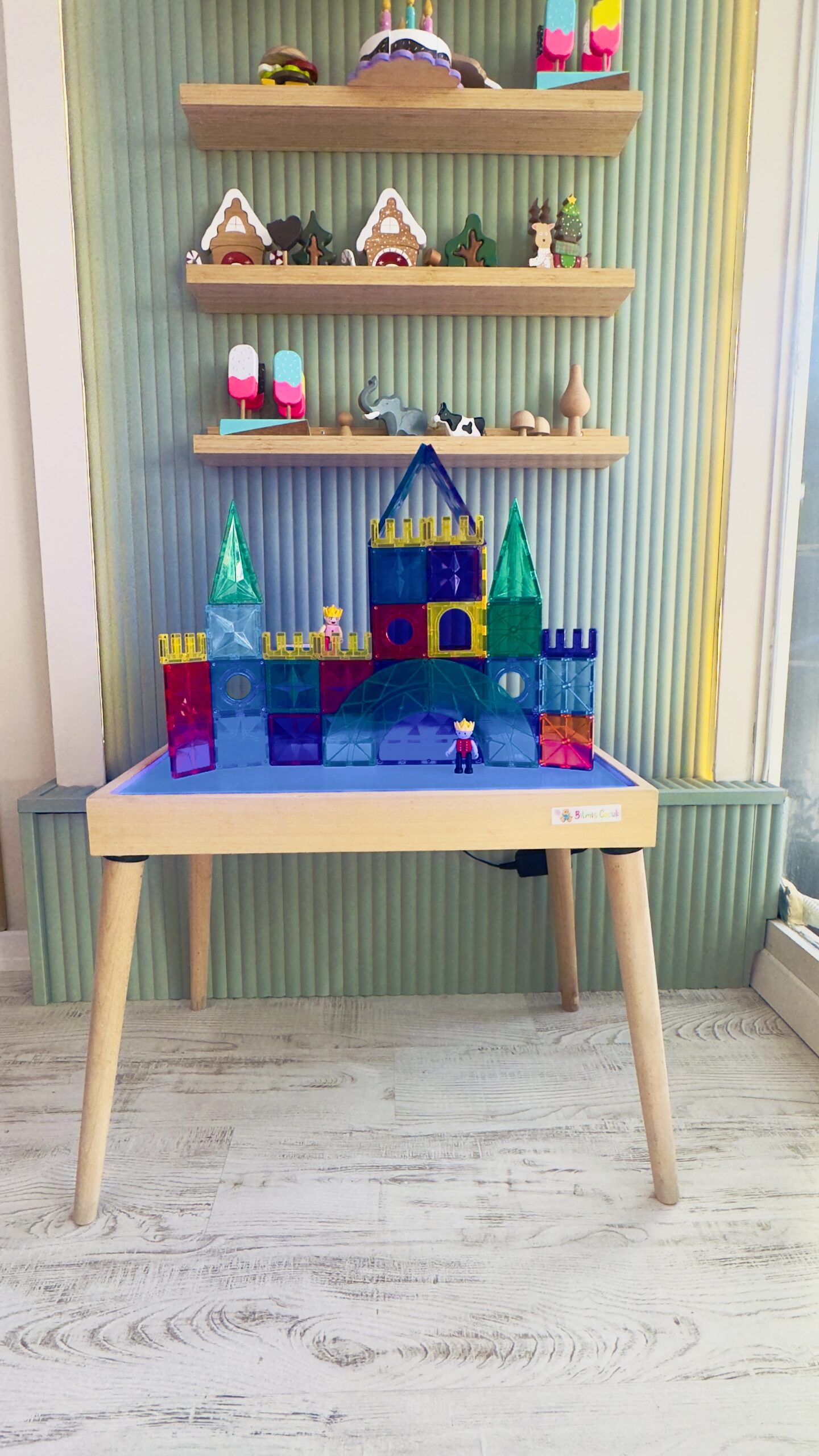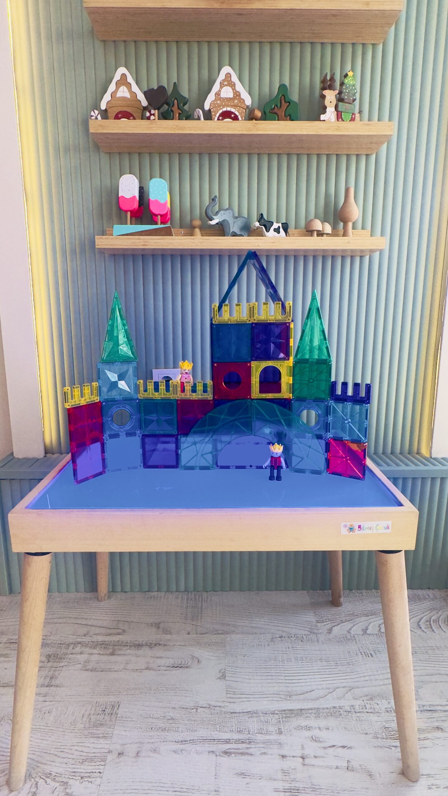 ışıklı Masa Montessori 16 Renkli Ahşap Oyuncak (Reggio Emilia tablası Ayaklı)
